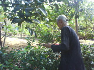 Ông Bảy, đã 90 tuổi. Năm nào về thăm cũng thấy ông đang cuốc đất hoặc tỉa hàng rào.